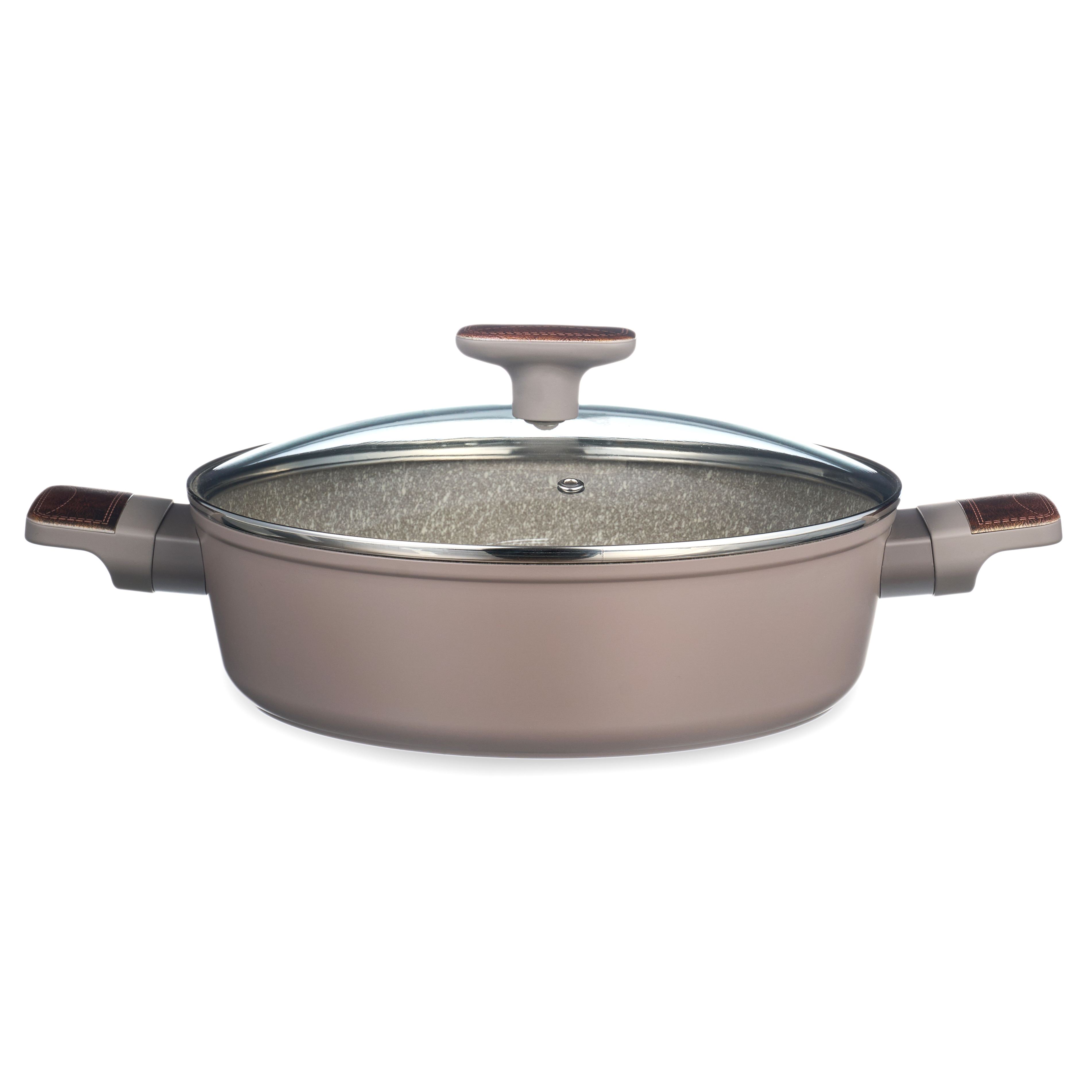 СОТЕЙНИК СО СТЕКЛЯННОЙ КРЫШКОЙ AGNESS С АНТИПРИГАРНЫМ ПОКРЫТИЕМ "CONSTANT" - это идеальный выбор для тех, кто ценит удобство и функциональность в посуде. Одним из главных достоинств этого сотейника является УСИЛЕННОЕ АНТИПРИГАРНОЕ ПОКРЫТИЕ "CONSTANT", которое позволяет готовить без использования большого количества масла и выдерживает до 20 000 циклов истирания. Благодаря этому, продукты готовятся быстрее и сохраняют свои полезные свойства. Равномерное нагревание сокращает время приготовления и сохраняет вкус и аромат продуктов. Многослойная структура покрытия обеспечивает превосходные эксплуатационные качества и увеличивает срок службы, не содержит PFOA. Эргономичные ручки из бакелита со стильными вставками не нагреваются и не плавятся, обеспечивают безопасное использование сотейника в процессе приготовления пищи. Посуда AGNESS - это современный дизайн и новейшие технологии производства.