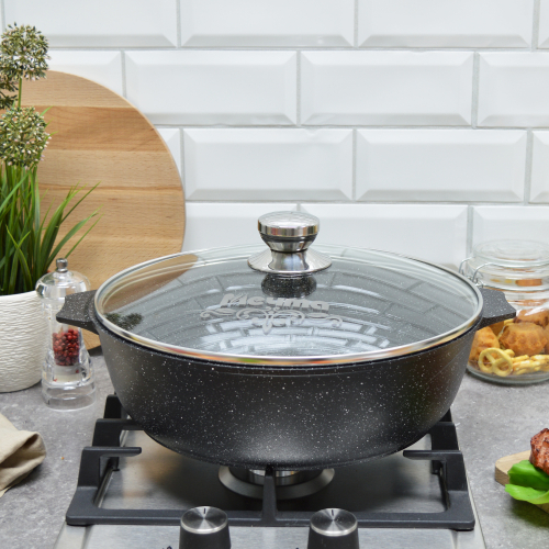 Жаровня 6л Гранит blackСверхпрочное покрытие отличается особой износостойкостью и повышенными антипригарными свойствами.Ресурс более 12 000 циклов.Литой толстостенный корпус не подвержен деформации, а утолщенное дно позволяет равномерно распределить тепло по всей поверхности.Объем - 6 л.Заключаем договора по 44 ФЗ, 223 ФЗ