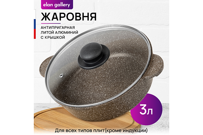 Жаровня (сотейник) 24 см 3 л ГАРМОНИЯ ВКУСА "Коричневый опал" С КРЫШКОЙ ф24, 30,5*25*14 см