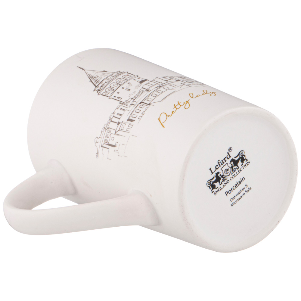 Кружка TM Lefard лаконичной формы имеет удобную ручку и отличный объем 380 мл. Кружка изготовлена из качественного фарфора. Отличный выбор для подарка. Продукция сертифицирована и безопасна для контакта с пищевыми продуктами. Можно ставить в микроволновую печь и мыть в посудомоечной машине
