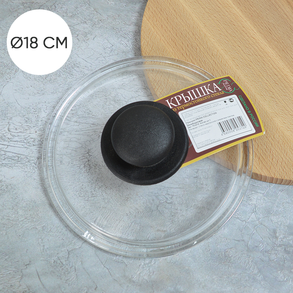 Крышка 18см стеклянная безободковая, Prima CollectionЖаропрочное стекло гарантирует стойкость крышки к резким перепадам температуры.Идеально подходит для сковородок и кастрюль.Диаметр - 18 см.Заключаем договора по 44 ФЗ, 223 ФЗ