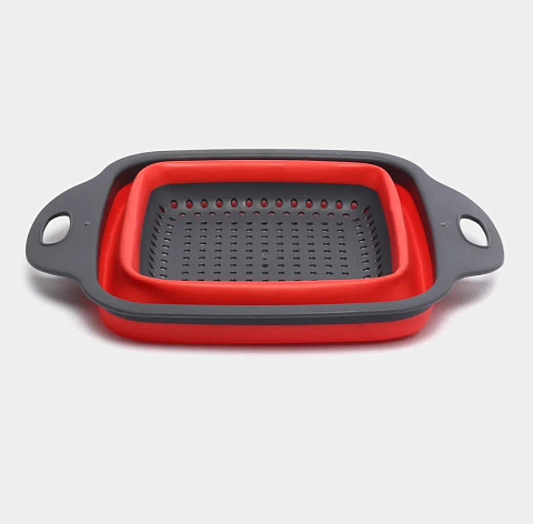 Дуршлаг складной силиконовый квадратный 18 см красный