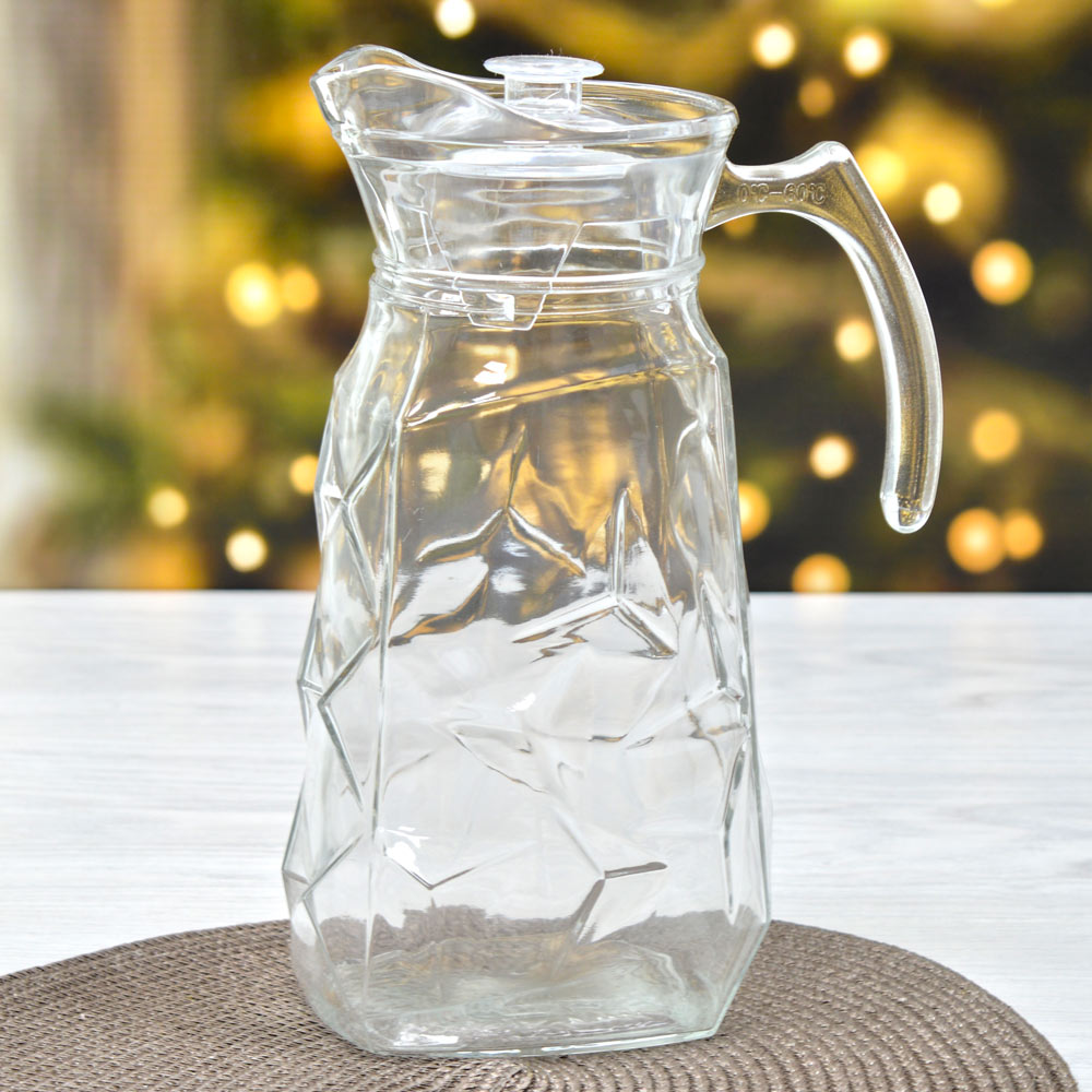 Кувшин 1,8л с крышкойКлассический кувшин прекрасно подойдет для того, чтобы в жаркую летнюю погоду насладиться прохладным освежающим напитком.Кувшин изготовлен из стекла, что позволяет напиткам внутри нагреваться или остывать медленнее.Объем - 1,8 л.Заключаем договора по 44 ФЗ, 223 ФЗ