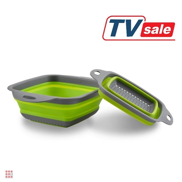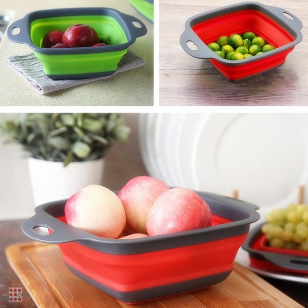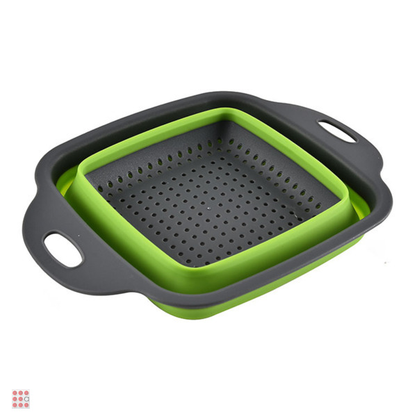 Складной квадратный силиконовый дуршлаг, очень удобный, занимает минимум места, не гремит, можно взять с собой!