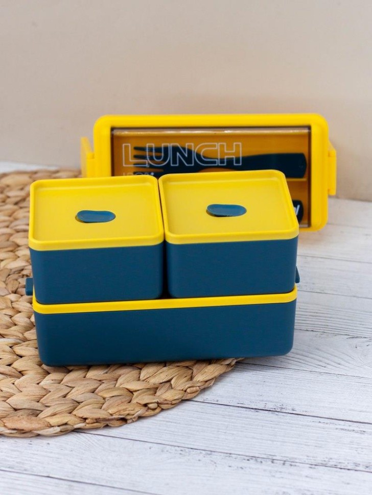 Ланчбокс "Big life", yellow-blue (ложка+вилка), 1400 мл