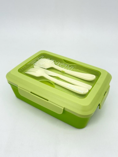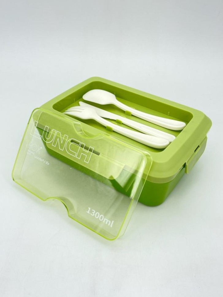 В комплект входят ложка и вилка. Ланч-бокс устойчив к температуре от +100 до -20С, что позволяет разогревать его в микроволновой печи и мыть в посудомоечной машине.