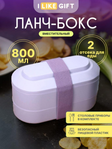 Ланч-бокс состоит из 1 отделения с двумя отсеками. Герметичная крышка оснащена клапаном для выпуска пара и отделением для столовых приборов (в комплекте ложка и вилка).
