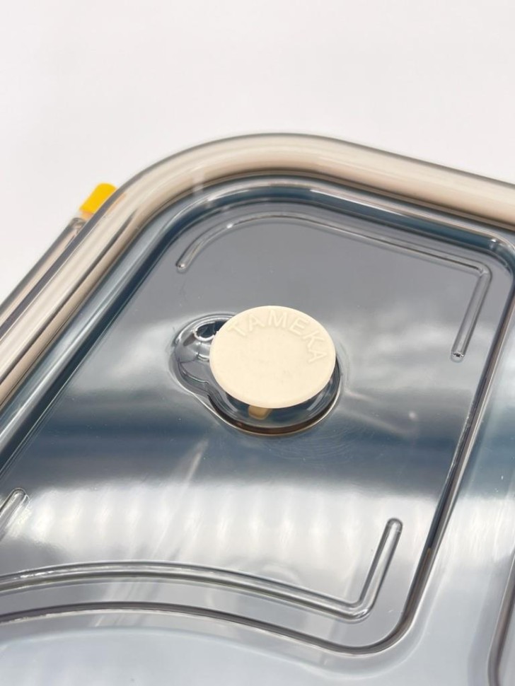 Состоит из 1 яруса с четыремя отсеками и отделением для столовых приборов. Герметичная крышка с резиновым уплотнителем оснащена клапаном для выпуска пара.