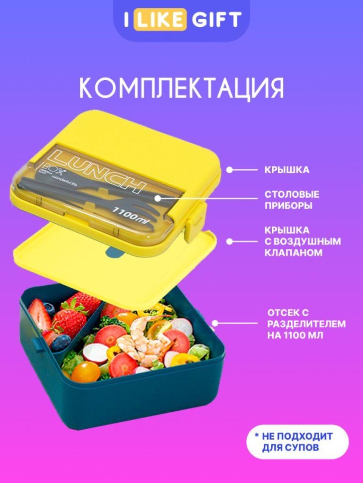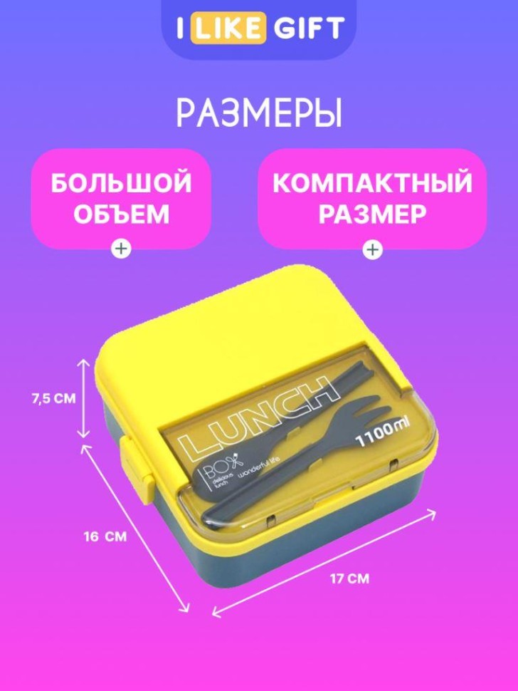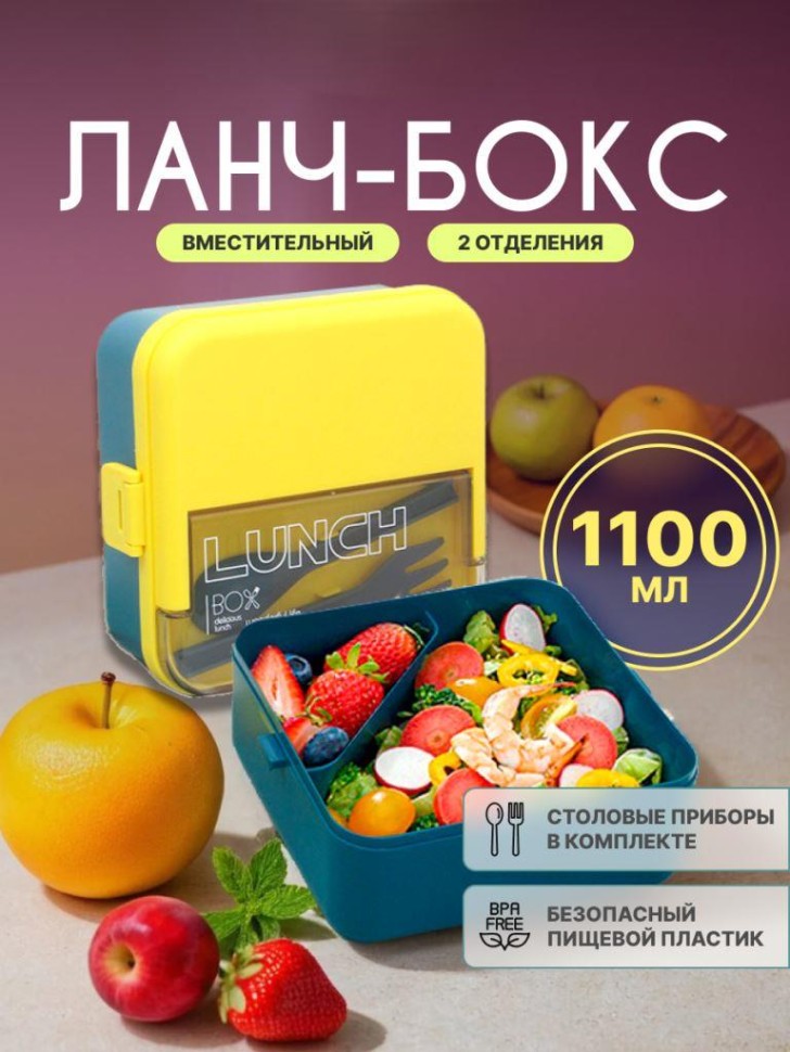 Ланчбокс выполнен из высококачественного пищевого пластика.