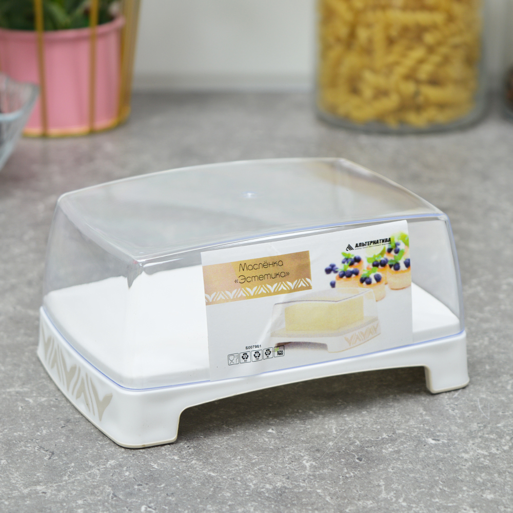 Масленка "Эстетика" (бело-бежевый) украсит ваш стол и позволит сохранить сливочное масло свежим и вкусным длительное время. Масленка состоит из прозрачной пластиковой крышки и прямоугольного пластикового подноса, украшенного изысканным узором.Заключаем договора по 44 ФЗ, 223 ФЗ