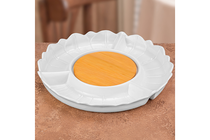Менажница 28*28*3,5 см "Цветок" цельная 4 секции + деревянная вставка