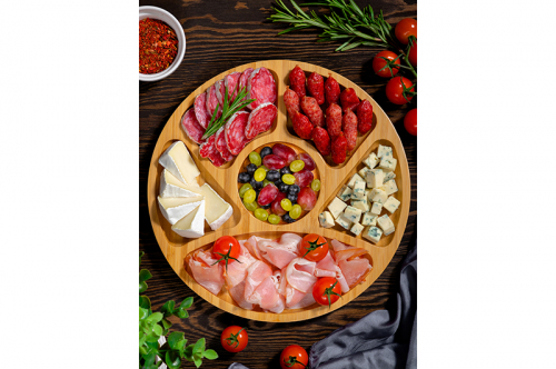 Менажница от Elan Gallery предназначена для эстетичной подачи угощений к столу. Размер изделия – 25,5х25,5х1,8 см. Выполнена из натурального бамбука, имеет шесть секций разных форм и размеров – они позволят удобно разделять угощения. Используйте как секционное блюдо для подачи разнообразных закусок. На завтрак подайте сыр, мясную и колбасную нарезку. Красиво преподнесите сухофрукты и орешки на праздничной вечеринке. Проведите уютное чаепитие, задействовав большую тарелку в качестве конфетницы: заполните её вашими любимыми конфетами, зефиром, мармеладом и другими сладостями. Натуральный цвет дерева и мягкая круглая форма гармонично впишут поднос в интерьер любой кухни, столовой или гостиной, делая его не только функциональным, но и декоративным элементом вашего кухонного инвентаря. Не рекомендуется применять абразивные моющие средства. Не подходит для замачивания, использования в посудомоечной машине и микроволновой печи. После мытья тщательно протрите поверхность сухой тканью. Хранить вдали от нагревательных приборов при нормальном уровне влажности. Универсальный поднос станет оригинальным подарком для каждого, кто ценит не только практичность, но и привлекательность. В коллекции бренда Элан Галерея вы найдёте разнообразную столовую утварь, которая поможет сделать сервировку удобной и стильной. /