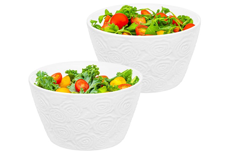 Набор 2 салатников из серии «Розы» от Elan Gallery предназначен для эстетичной сервировки вашего стола. Размер каждого изделия – 13,3х13,3х7,4 см, объём – 610 мл. Выполнены из высококачественного белого фарфора. Он не впитывает цвет продуктов и легко отмывается, благодаря чему надолго сохраняет свою белизну. Поверхность изделий украшают рельефные узоры в виде пышных бутонов роз. Большие глубокие миски станут идеальным вариантом для любителей здорового питания. Используйте для приготовления и подачи салатов, а также овощей и фруктов. Кроме того, они послужат для сервировки холодных закусок и гарниров, разнообразных сладостей и десертов. Задействуйте в качестве конфетниц для организации уютного чаепития. Мягкая округлая форма и изысканный дизайн позволят салатницам гармонично дополнить интерьер любой кухни или столовой. Не рекомендуется применять абразивные моющие средства. Подходят для использования в посудомоечной машине и микроволновой печи. Поставляются в дизайнерской картонной коробке – благодаря ей вам не потребуется дополнительная подарочная упаковка. Фарфоровая сервировочная посуда будет оригинальным подарком для хозяйки, ценящей не только практичность, но и привлекательность. Серия «Розы» от бренда Элан Галерея станет украшением любого кухонного инвентаря и позволит собрать красивый сервиз в едином стиле! /