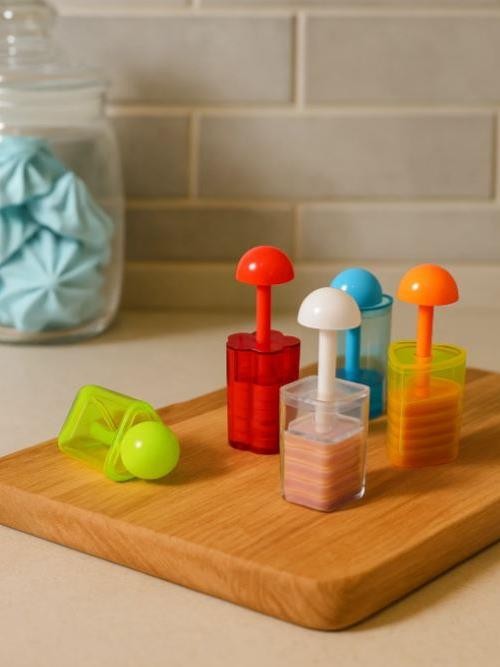 Формочки изготовлены из прочной пластмассы и не прилипают к продукту. Нижний край формочек заострен, поэтому они хорошо вырезают фигурки.