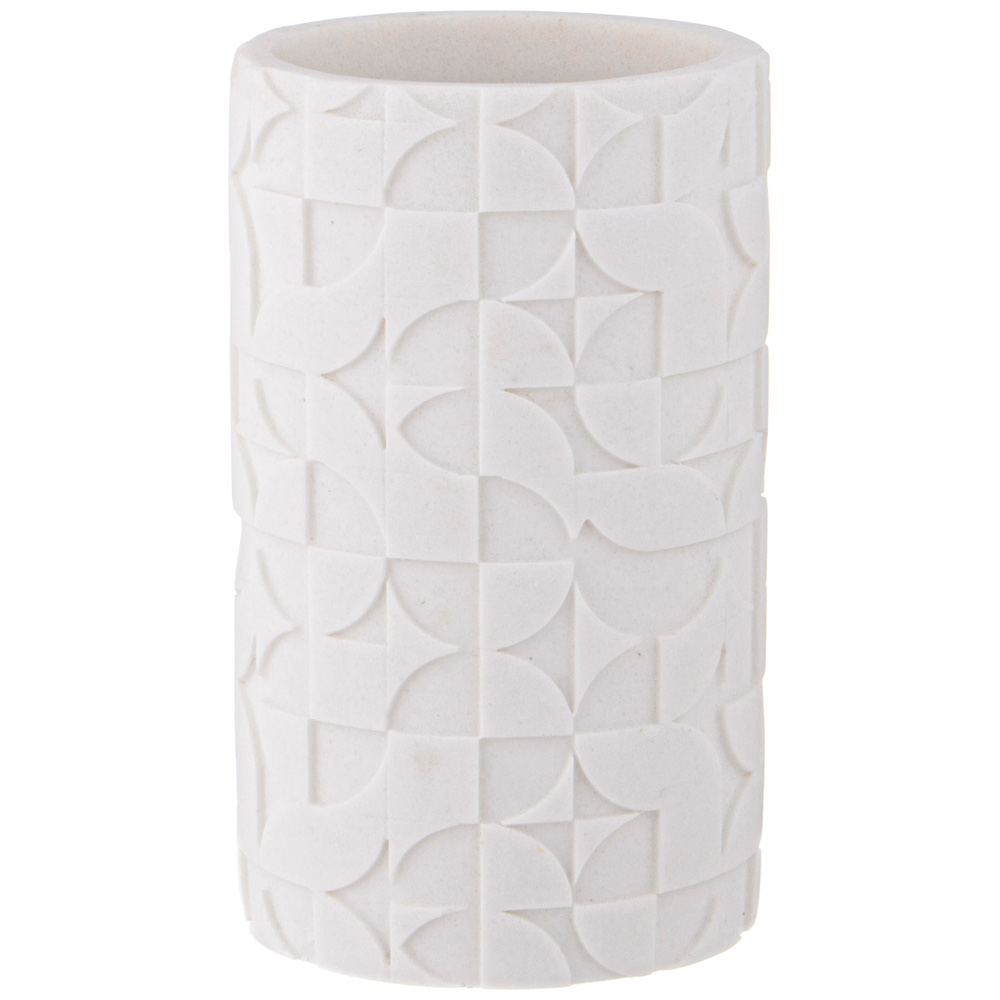 Набор аксессуаров для ванной комнаты состоит из дозатора для жидкого мыла и подставки-стакана.
