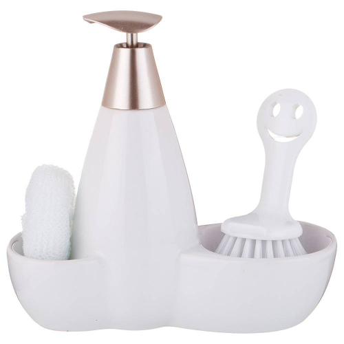 Набор аксессуаров для ванной комнаты состоит из дозатора для жидкого мыла и подставки для зубных щёток.
