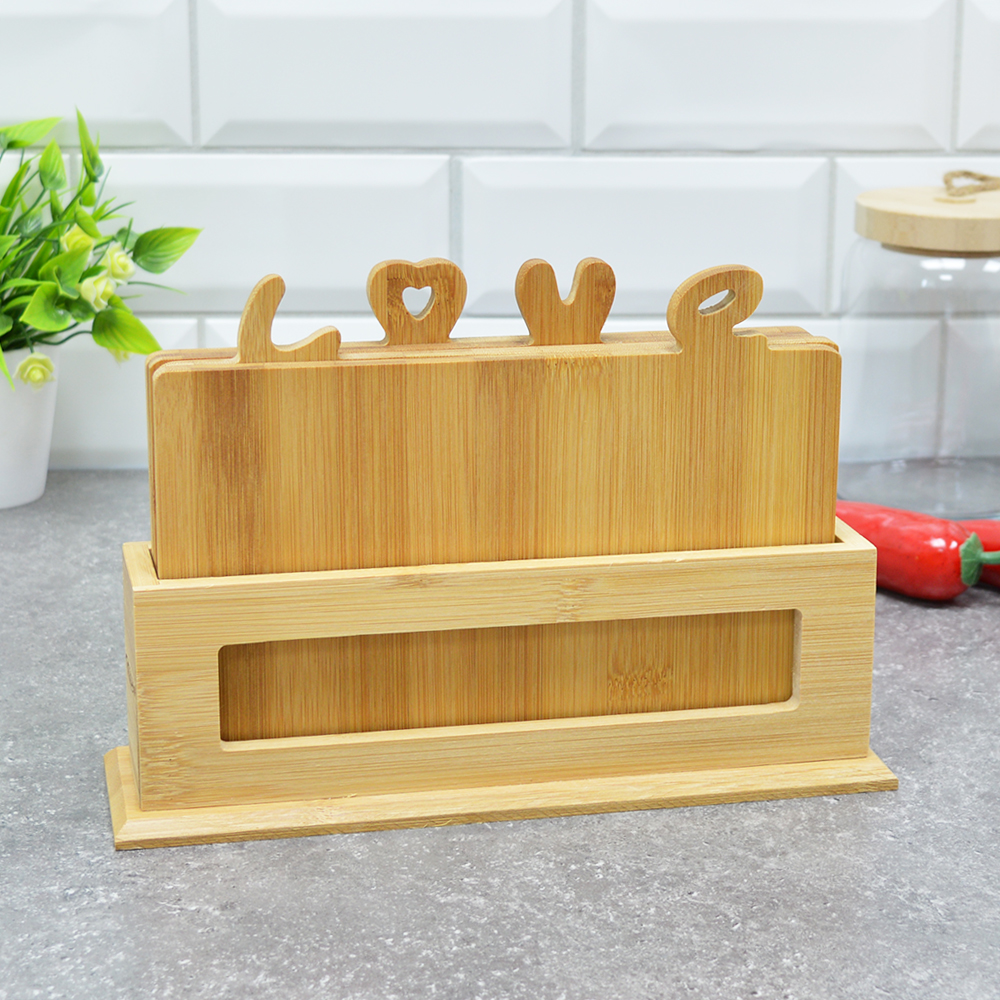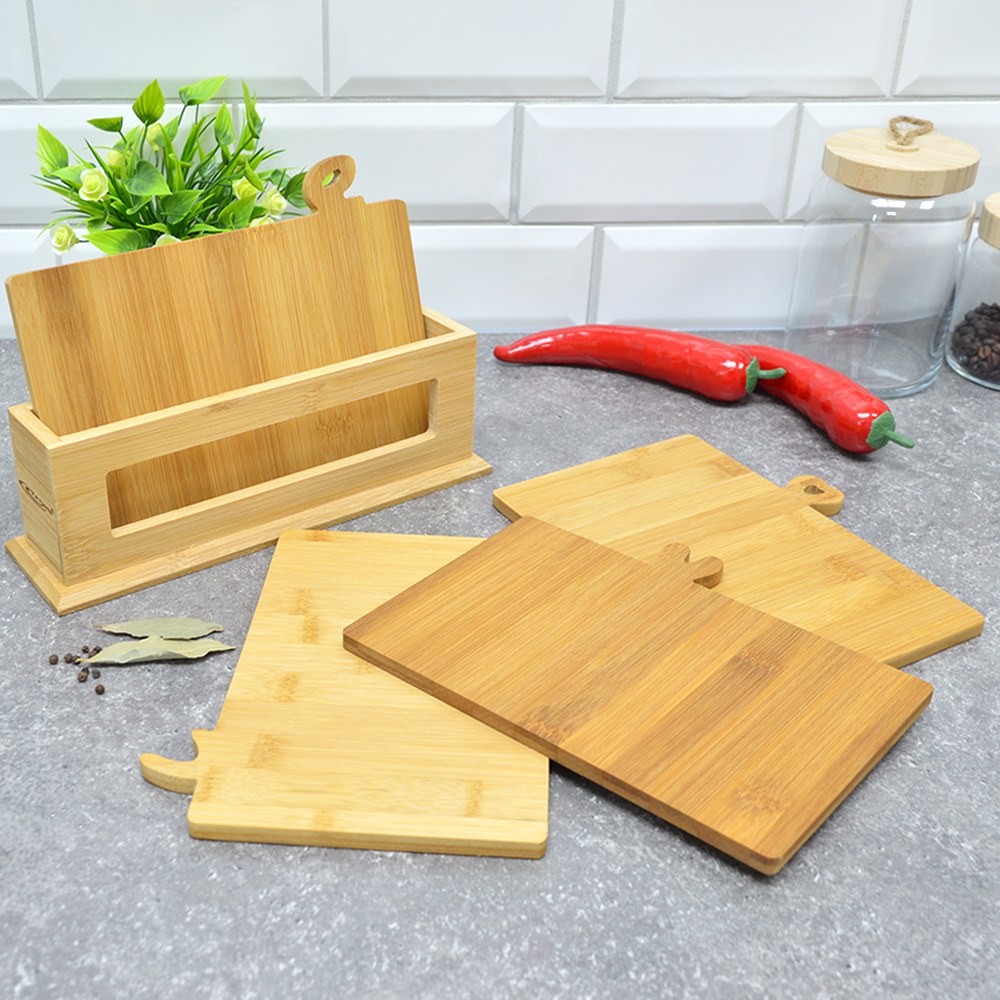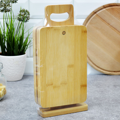 Набор досок разделочных 5 предметов (4 доски 235*175*70мм, подставка) №2 бамбук