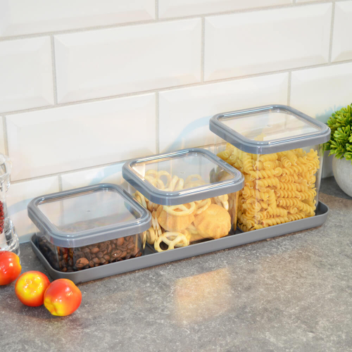 Набор емкостей для сыпучих 3шт (0,4л, 0,6л, 0,9л) на подставке "Cubbo Scandi", белый