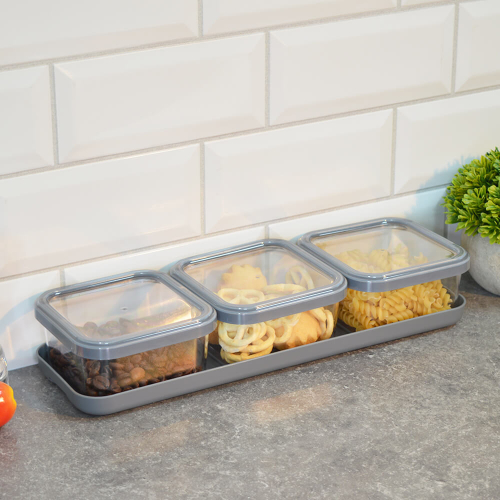 Набор емкостей для сыпучих 3шт 0,4л на подставке "Cubbo Scandi", серый