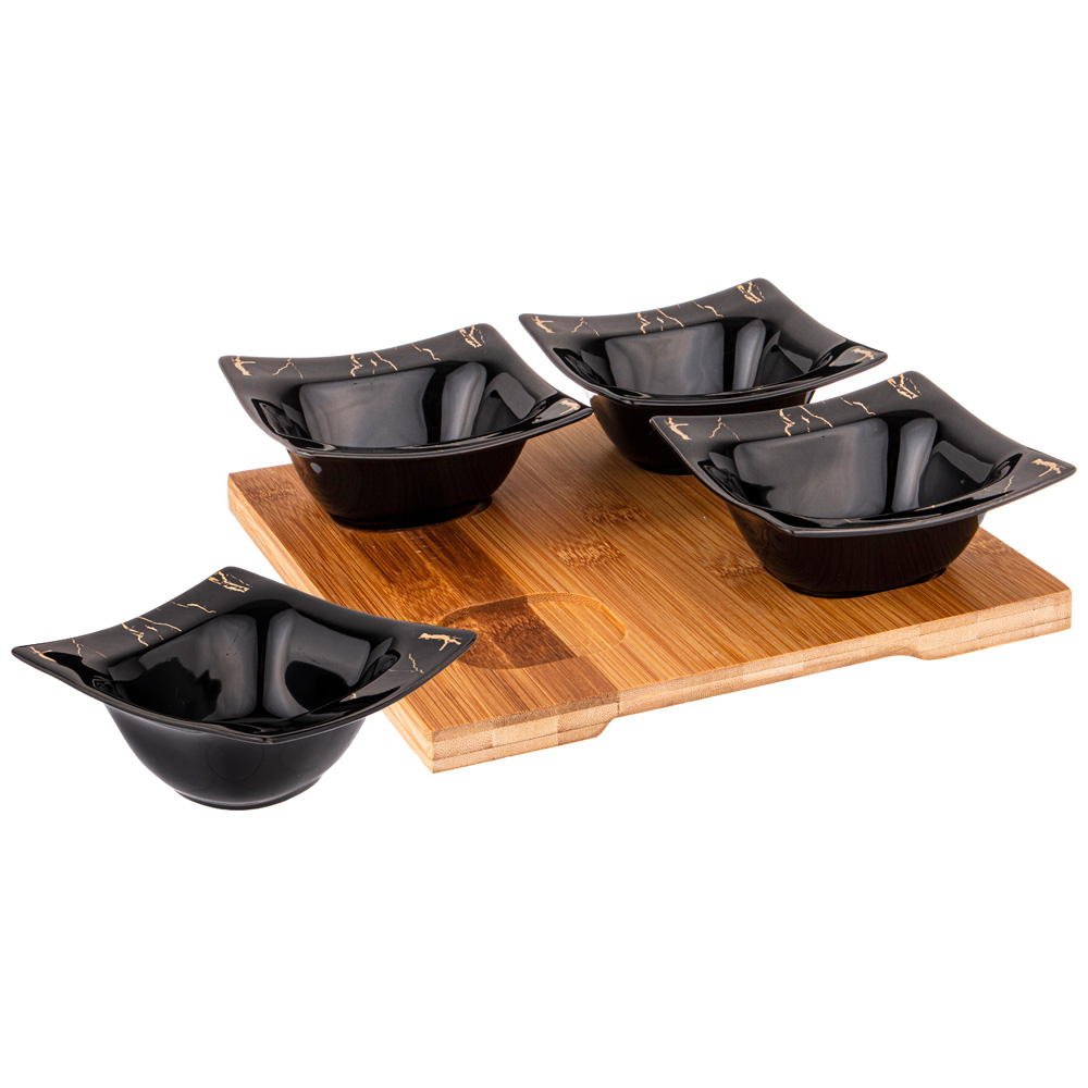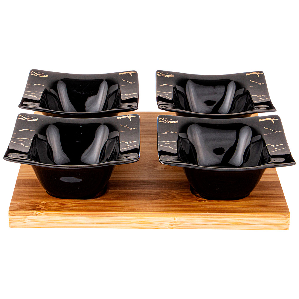 НАБОР ИЗ 4 САЛАТНИКОВ НА ДЕРЕВ.ПОДСТАВКЕ LEFARD "FANTASY" 11,5 СМ ЧЕРНЫЙ (КОР=12НАБ.)