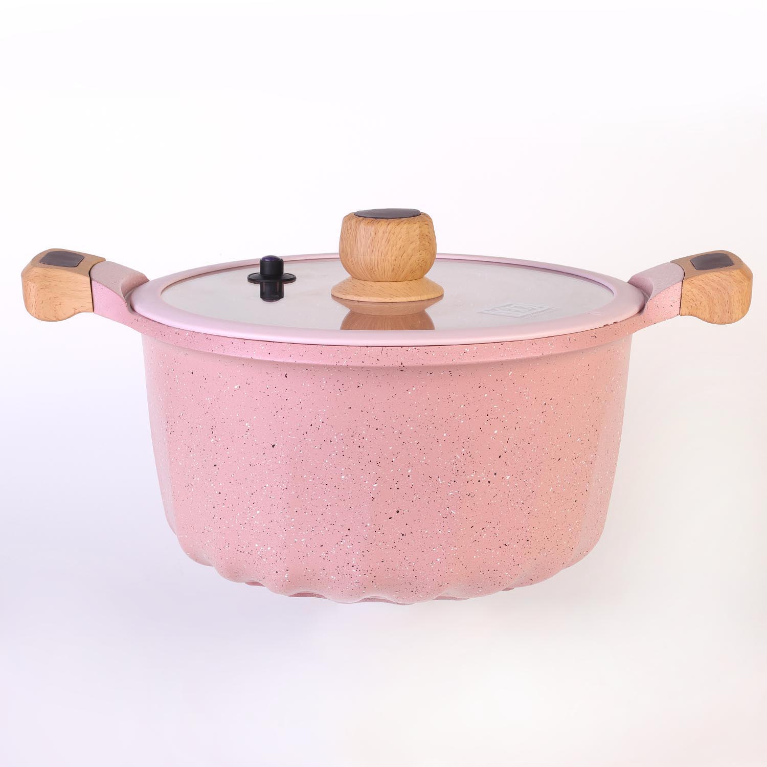 Размеры посуды : ковш 18 см — 1,95 л; 20 см — 3 л; 24 см — 5 л; 28 см — 7,8 л; сковорода 28 см — 4,2 л.