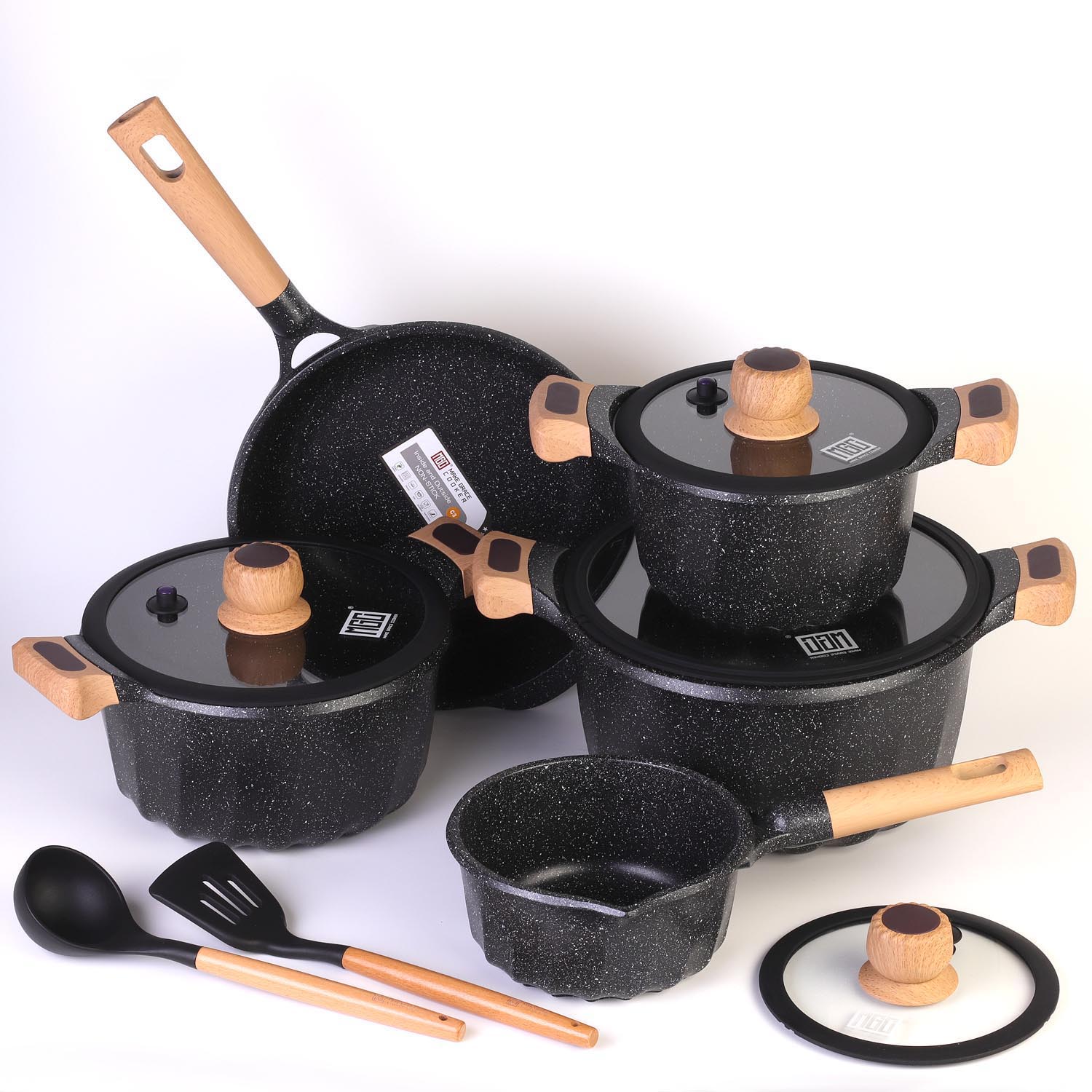 Набор кастрюль со сковородой с антипригарным покрытием.