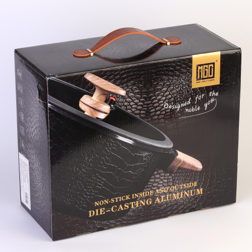 Размеры посуды : ковш 18 см — 1,95 л; 20 см — 3 л; 24 см — 5 л; 28 см — 7,8 л; сковорода 28 см — 4,2 л.