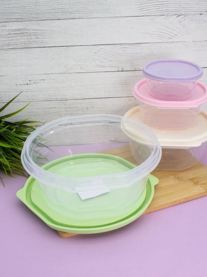 Набор контейнеров «Color life round» — это универсальное решение для хранения продуктов дома, на даче или в дороге. В комплект входят 4 контейнера объёмом 200 мл, 530 мл, 1 л и 2 л, которые удобно складываются один в другой для компактного хранения. Крышки плотно закрываются, обеспечивая сохранность свежести и предотвращая проливание. Контейнеры выполнены из прочного пищевого пластика, безопасного для здоровья, и подойдут как для холодильника, так и для транспортировки еды. Яркий и жизнерадостный дизайн с мягкими пастельными цветами украсит любую кухню. Идеальный набор для тех, кто ценит порядок, удобство и стиль.