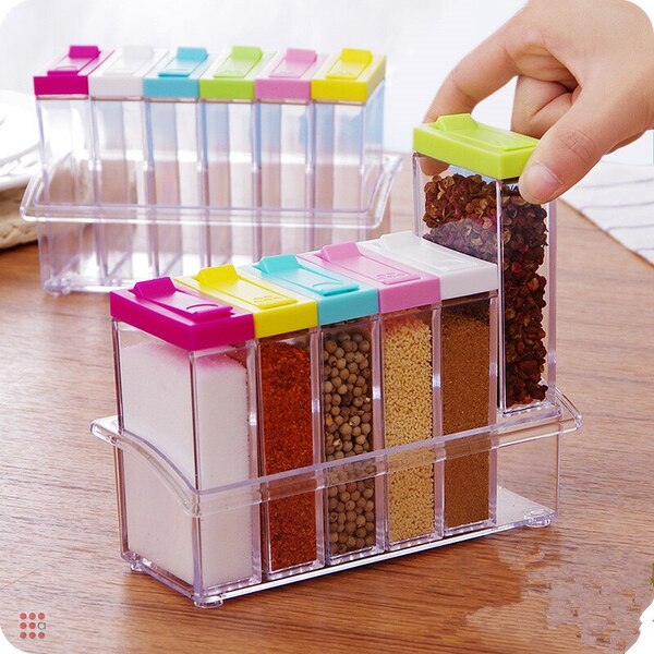 Seasoning Six Piec Set имеет 6 контейнеров из ПВХ пластика с удобными крышками - идеальный помощник для хранения приправ и специй на кухне.