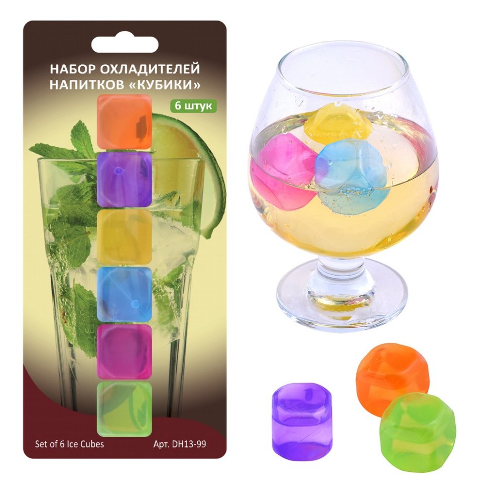Многоразовые кубики идеально подходят для охлаждения и украшения различных напитков, таких как чай, компот, коктейль и т.п. Одно из основных достоинств кубиков – они не разбавляют напитки растаявшим льдом!