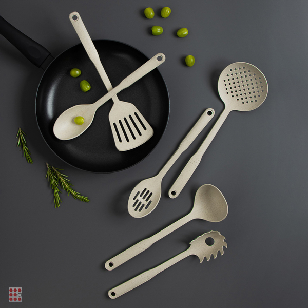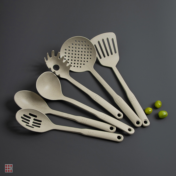 Состав набора: лопатка с прорезями - 1 шт., лопатка - 1 шт., ложка для спагетти - 1 шт., шумовка - 1 шт., половник - 1 шт., ложка кухонная - 1 шт.
