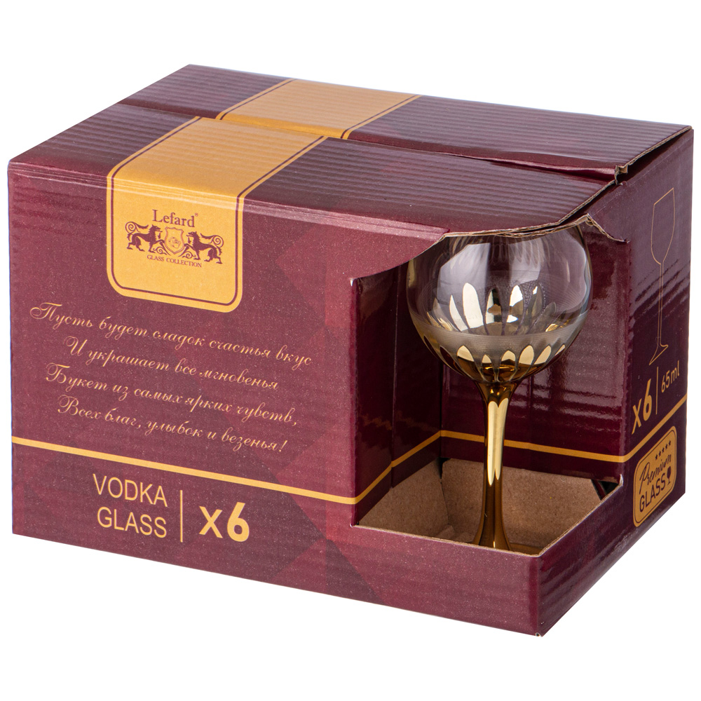Этот изысканный набор рюмок создан, чтобы превратить каждый момент в настоящий праздник. Каждая рюмка украшена золотым декором и нежным белым узором, который придаёт ей неповторимый блеск и шик.