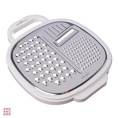 Терка прекрасно дополнит коллекцию ваших кухонных аксессуаров.  Изделие сделано из нержавеющей стали и пластика, которые безопасны для здоровья. Оно используется в горизонтальном виде, что позволяет вам меньше уставать от процесса натирания. Пластиковый контейнер экономит место и ваше время. Посуда обладает стойкостью к коррозии, невероятной остротой лезвий и долгим сроком службы. Изделие можно мыть в посудомоечной машине. Безопасная и эргономичная ручка также делает эту модель идеальной для ежедневного использования.