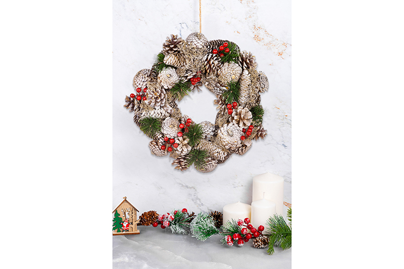 Новогоднее украшение-венок «Зимняя вишня» от Elan Gallery станет изящным дополнением вашего интерьера. Размер изделия – 34х34х8 см. Представляет собой композицию из еловых веточек, шишек и искусственных ягод. Мы создали коллекцию новогодних и рождественских товаров для сервировки и декора, которые наполнят пространство атмосферой уюта. Изделия помогут оформить интерьер праздничными композициями и добавят нотку зимнего волшебства. Изделие имеет петельку для подвешивания, благодаря которой его удобно разместить на двери или стене для декорирования домашнего интерьера. Повесьте венок на дверь, шкаф и любую другую свободную вешалку, чтобы он всегда был на виду и радовал глаз. Сделайте его частью праздничного стола, чтобы привнести в дом ощущение чуда. Задействуйте в тематическом оформлении с фигурками, статуэтками и другими украшениями. Необычный элемент декора найдёт место в любой части вашей квартиры – в прихожей, гостиной, столовой или спальне. Это изящный и лёгкий способ добавить эстетики любому помещению. Поставляется в картонной коробке. В коллекции бренда Elan Gallery представлены посуда, сувениры и украшения с новогодней символикой. Каждый подберёт оригинальный сюрприз для семьи, друзей и коллег на Новый год и Рождество. Такой подарок наполнит дом семейным теплом и духом праздника! /