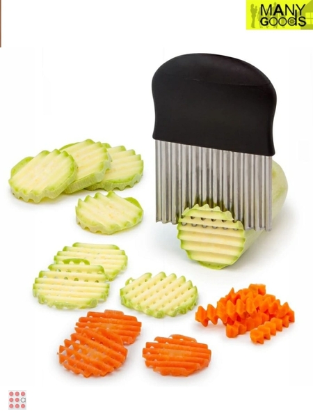Рифлёными пластинами и брусочками можно украсить салаты, гарниры, десерты, а также красиво нарезать овощи для консервации.