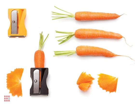 Креативное оформление пилера для овощей придумал израильский дизайнер Авичай Тадмор (Аvichai Тadmor). «Морковко» — наш перевод названия гаджета , которого дизайнер назвал «Karoto». Просто, забавно и по-детски непринужденно. Выглядит как обычная точилка для карандашей, но вместо них «точит» морковку и другие овощи-фрукты подходящей формы, создавая красивую стружку для украшения блюд.
