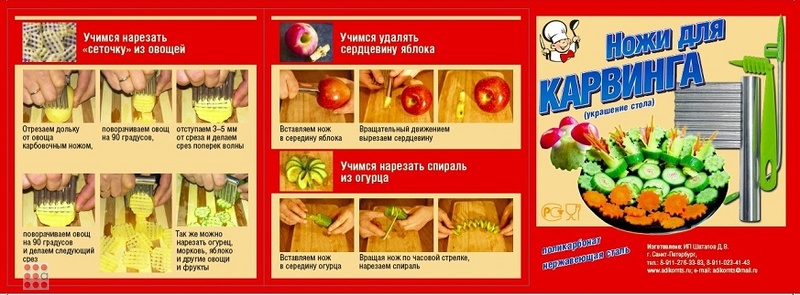 Ножи для карвинга в пакете - незаменимый атрибут Вашей кухни.Набор позволяет придать обычным блюдам праздничный вид.