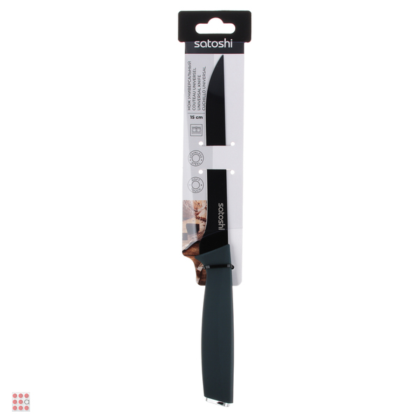 Нож кухонный 15 см SATOSHI «Орис» с лезвием из нержавеющей стали и антиналипающим покрытием станет вашим главным помощником на кухне. Имеет эргономичную рукоять с покрытием Soft-Touch, благодаря чему изделие не выскальзывает из рук и не вызывает усталости даже при длительной работе по нарезке. Острое лезвие с легкостью разрезает овощи, фрукты, мясные деликатесы и другие продукты на тонкие ломтики. Изделие долго держит заточку, не боится длительного контакта с кислотами, легко моется. Имеет строгий стильный дизайн.