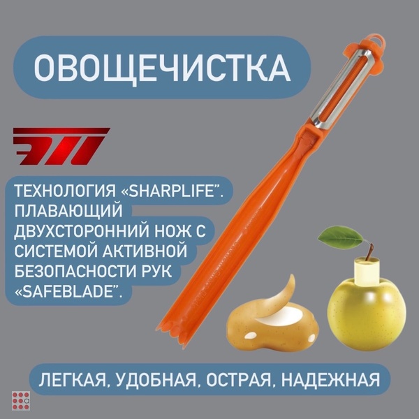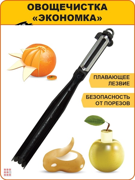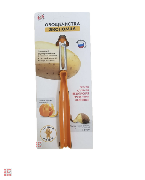 Нож-овощечистка модели Экономка - это незаменимый удобный прибор традиционной и привычной формы, который идеально тонко и легко чистит овощи и фрукты благодаря плавающему лезвию, имеющему двустороннюю заточку под правую и под левую руку. Кроме того, заводом применен принцип системы активной безопасности от порезов Sаfe-blade и этим ножом может пользоваться даже ребенок. Легкая, компактная овощечистка благодаря особенностям конструкции ручки может удалять сердцевину яблока и чистить апельсин.