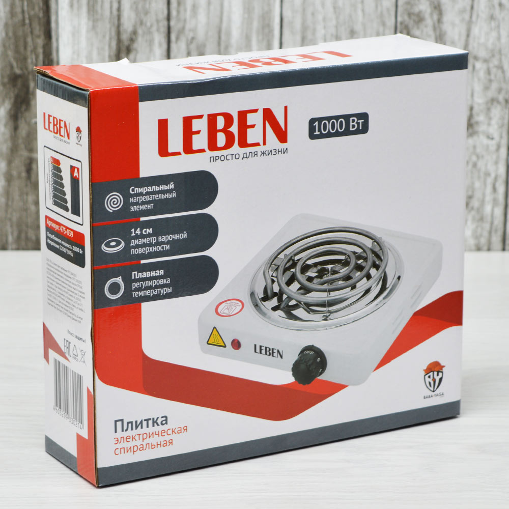 Плитка электрическая 1 комфорка 1000Вт d14см LEBENЭлектрическая настольная плита понадобится в любом хозяйстве. Ее можно использовать на кухне с маленькой площадью или на даче. Плитка предназначена для приготовления еды.Мощность - 1000 Вт.Диаметр комфорки - 14 см.Длина сетевого шнура - 100 см.Заключаем договора по 44 ФЗ, 223 ФЗ
