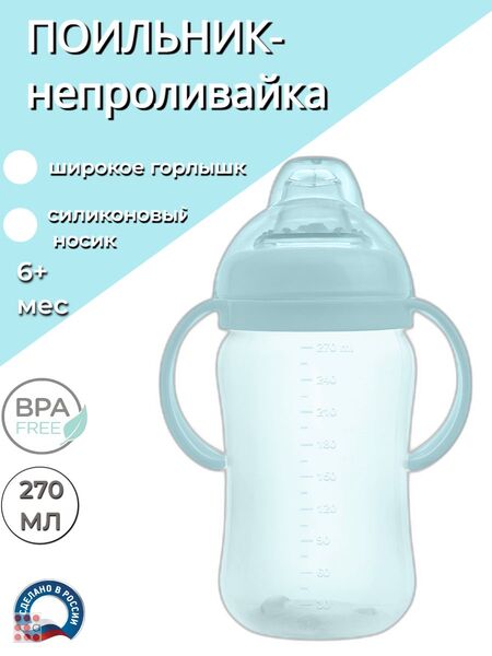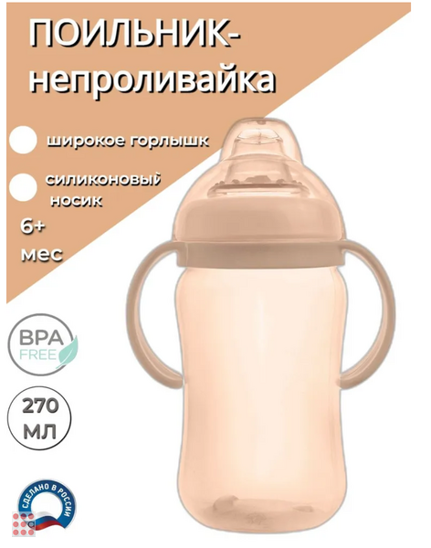 Поильник-непроливайка с носиком, 270 мл, в ассорти