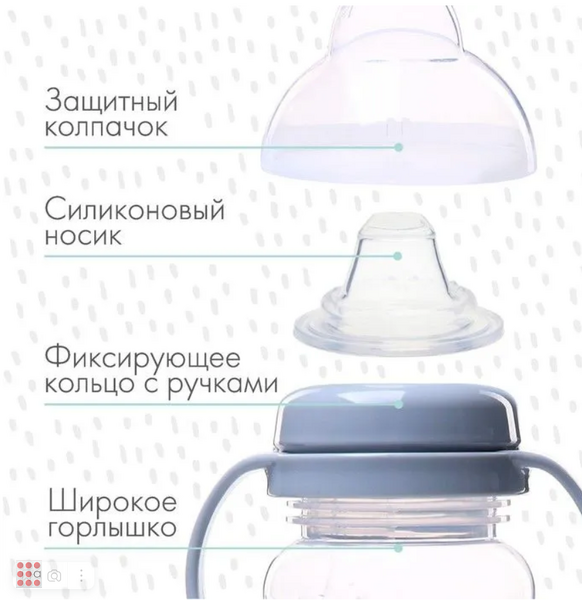 Емкость - 1 шт, ручки - 1 шт, колпачок - 1 шт, соска - 1 шт