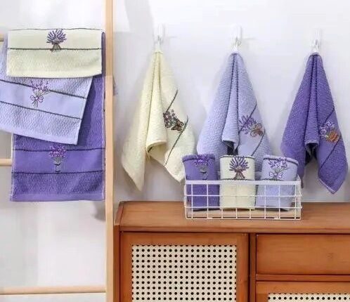 Полотенце кухонное махровое-букле "Букет лаванды" 25*50 см. хлопок 100%