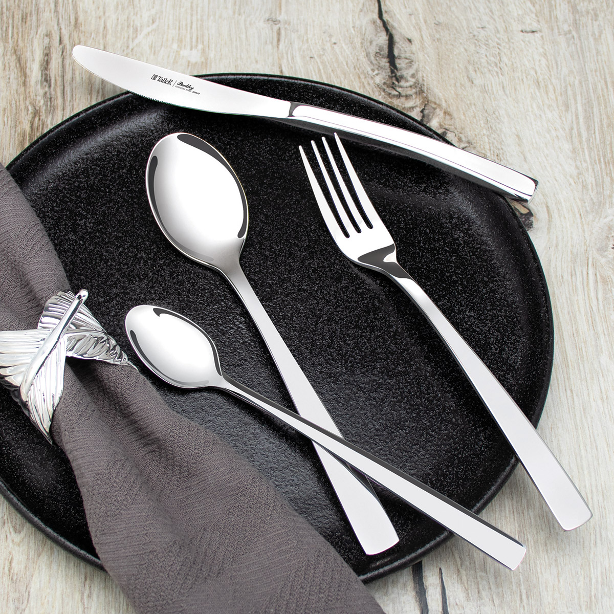 Столовый прибор (кроме лезвий ножей) изготовлен из высококачественной нержавеющей стали марки 18/10: