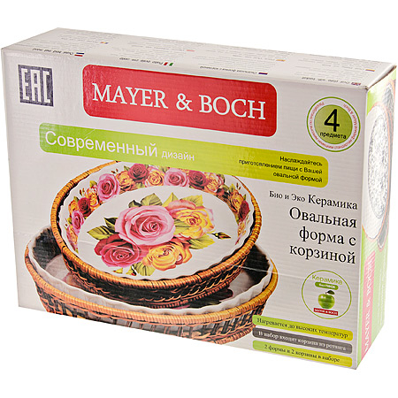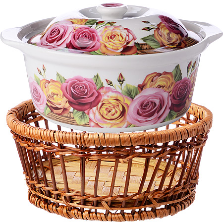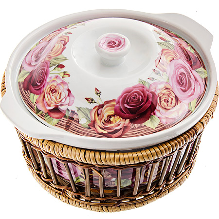 Кастрюля c крышкой MAYER&BOCH выполнена из качественного фарфора белого цвета. Кастрюля имеет классическую круглую форму и небольшие удобные ручки. Поверхность украшена изображением цветов. В комплекте: кастрюля, крышка и плетеная корзинка. Плетеная корзинка из ротанга выполняет роль оригинальной подставки для кастрюли. Фарфоровая кастрюля прекрасно подойдет для запекания овощей, мяса и других блюд, а благодаря своему оригинальному дизайну, она, несомненно, украсит ваш стол. Посуда не впитывает посторонние запахи, не имеет труднодоступных выступов или изгибов, которые накапливают грязь, и легко чистится. Фарфор выдерживает высокие перепады температуры, поэтому такую кастрюлю можно использовать в духовке, микроволновой печи, а также для хранения пищи в холодильнике. Подходит для мытья в посудомоечной машине. Изделие легко моется и не требуют специального ухода, можно мыть в посудомойке. Фарфоровая форма для запекания - это красивая посуда, очень полезный и нужный подарок на Новый год, Рождество, День рождения, на новоселье, для мамы, бабушки, подруги.