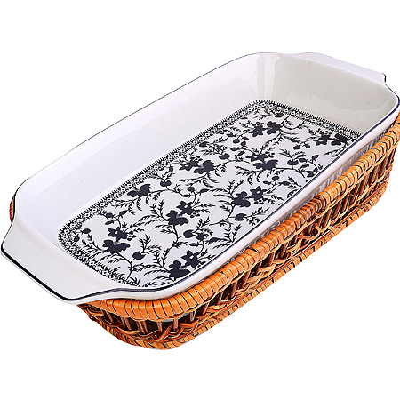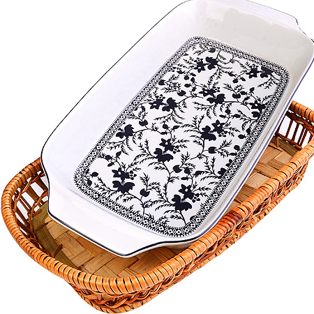 Форма для запекания MAYER&BOCH просто незаменимая посуда на кухне любой современной хозяйки, отличное решение для всех любителей блюд, приготовленных в духовке и микроволновой печи. Жаропрочная посуда изготовлена из высококачественной керамики, который выдерживает температуру от -20 до +250 градусов. Поверхность украшена изображением цветов. В комплекте: 1 форма, 1 плетеная корзинка. К форме прилагается плетеная корзинка из ротанга, выполняющая роль оригинальной подставки. Пища, приготовленная в керамической посуде, сохраняет естественный вкус и бесподобный аромат продуктов. Благодаря толстым стенкам, тепло равномерно распределяется внутри, поэтому блюдо получается сочным и нежным. В прочной и универсальной форме удобно запекать, тушить, сервировать и хранить приготовленные вами блюда. Она идеально подойдет для всех ваших кулинарных шедевров: запекания мяса, рыбы, картофеля, овощей, пасты и запеканок; для выпечки ароматных пирогов. Можно использовать в духовке, микроволновой и конвекционной печи, холодильнике и морозильной камере. Также отлично подойдет для подачи салатов, горячих блюд, овощей и фруктов. Идеальна для праздничного стола или большой семьи. Используйте ее для приготовления восхитительного обеда или ужина, и ваши гости будут приятно удивлены и восторженны. Жаровня - отличный помощник на кухне, для тех, кто любит готовить и не готов тратить много времени на ее приготовление. Изделия легко моются и не требуют специального ухода, можно мыть в посудомойке. Керамическая форма для запекания - это красивая посуда, очень полезный и нужный подарок на Новый год, Рождество, День рождения, на новоселье, для мамы, бабушки, подруги. 35,5 х 18 х 5 см.