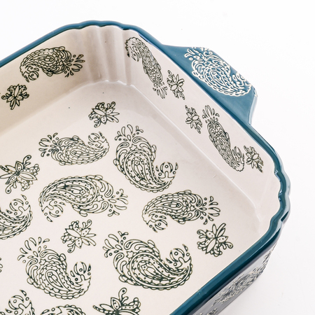 Форма для запекания LORAINE – ваш надежный партнер в кулинарных свершениях, дарящий безграничные возможности для творчества на кухне. Эта незаменимая помощница создана для воплощения самых смелых кулинарных фантазий, позволяя легко готовить в духовке и микроволновой печи настоящие шедевры, достойные восхищения. Изготовленная из высококачественной жаропрочной керамики, она выдерживает впечатляющий диапазон температур от -20 до +250 градусов, гарантируя безопасность и долговечность при каждом использовании. Керамика не только устойчива к экстремальным перепадам температур, но и бережно сохраняет естественный вкус и богатый аромат продуктов, раскрывая их лучшие качества. Благодаря продуманной конструкции и толстым стенкам, тепло равномерно распределяется внутри формы, обеспечивая идеальную сочность и нежность каждого блюда – будь то ароматное мясо, тающая во рту рыба, аппетитный картофель, сочные овощи или восхитительная запеканка. Универсальность этой модели поражает: запекайте, тушите, сервируйте, храните – все в одной посуде! Она идеально подходит для приготовления самых разнообразных блюд, от сытных повседневных обедов до изысканных праздничных угощений. Используйте ее в духовке, микроволновой и конвекционной печи, а также для хранения готовой пищи в холодильнике. Большие и удобные ручки обеспечивают легкий и безопасный захват, позволяя комфортно доставать и поднимать изделие даже с горячим блюдом. Помимо своего основного предназначения, она прекрасно подходит для эффектной подачи салатов, горячей еды, свежих овощей и фруктов, превращая ее в универсальный элемент сервировки стола. Данная посуда станет настоящим украшением праздничного застолья или незаменимым помощником для большой семьи, позволяя легко приготовить восхитительный обед или ужин, которые непременно удивят и восхитят ваших гостей. Керамическая жаровня – это выбор тех, кто любит готовить и ценит каждую минуту своего времени. Она легко моется, не требует сложного ухода и подходит для мытья в посудомоечной машине, что делает ее эксплуатацию еще более удобной и приятной. Эта керамическая форма для выпечки – не просто красивая и функциональная посуда, но и прекрасный подарок на любой праздник, будь то Новый год, Рождество, День рождения или новоселье, который обязательно будет оценен по достоинству. 32,5 х 21,5 х 6 см.