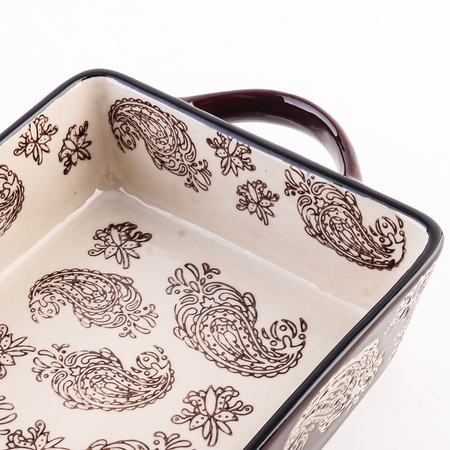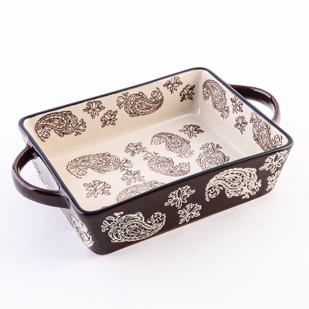 Форма для запекания LORAINE – ваш надежный партнер в кулинарных свершениях, дарящий безграничные возможности для творчества на кухне. Эта незаменимая помощница создана для воплощения самых смелых кулинарных фантазий, позволяя легко готовить в духовке и микроволновой печи настоящие шедевры, достойные восхищения. Изготовленная из высококачественной жаропрочной керамики, она выдерживает впечатляющий диапазон температур от -20 до +250 градусов, гарантируя безопасность и долговечность при каждом использовании. Керамика не только устойчива к экстремальным перепадам температур, но и бережно сохраняет естественный вкус и богатый аромат продуктов, раскрывая их лучшие качества. Благодаря продуманной конструкции и толстым стенкам, тепло равномерно распределяется внутри формы, обеспечивая идеальную сочность и нежность каждого блюда – будь то ароматное мясо, тающая во рту рыба, аппетитный картофель, сочные овощи или восхитительная запеканка. Универсальность этой модели поражает: запекайте, тушите, сервируйте, храните – все в одной посуде! Она идеально подходит для приготовления самых разнообразных блюд, от сытных повседневных обедов до изысканных праздничных угощений. Используйте ее в духовке, микроволновой и конвекционной печи, а также для хранения готовой пищи в холодильнике. Большие и удобные ручки обеспечивают легкий и безопасный захват, позволяя комфортно доставать и поднимать изделие даже с горячим блюдом. Помимо своего основного предназначения, она прекрасно подходит для эффектной подачи салатов, горячей еды, свежих овощей и фруктов, превращая ее в универсальный элемент сервировки стола. Данная посуда станет настоящим украшением праздничного застолья или незаменимым помощником для большой семьи, позволяя легко приготовить восхитительный обед или ужин, которые непременно удивят и восхитят ваших гостей. Керамическая жаровня – это выбор тех, кто любит готовить и ценит каждую минуту своего времени. Она легко моется, не требует сложного ухода и подходит для мытья в посудомоечной машине, что делает ее эксплуатацию еще более удобной и приятной. Эта керамическая форма для выпечки – не просто красивая и функциональная посуда, но и прекрасный подарок на любой праздник, будь то Новый год, Рождество, День рождения или новоселье, который обязательно будет оценен по достоинству. 23 х 14 х 5 см.