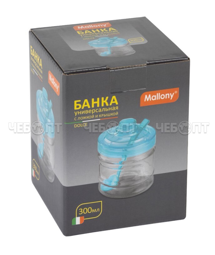 Банка 300 мл DOLCE с ложкой, пластиковая крышка, стекло 85*85*110 мм арт. 103618 [48] СКРАП