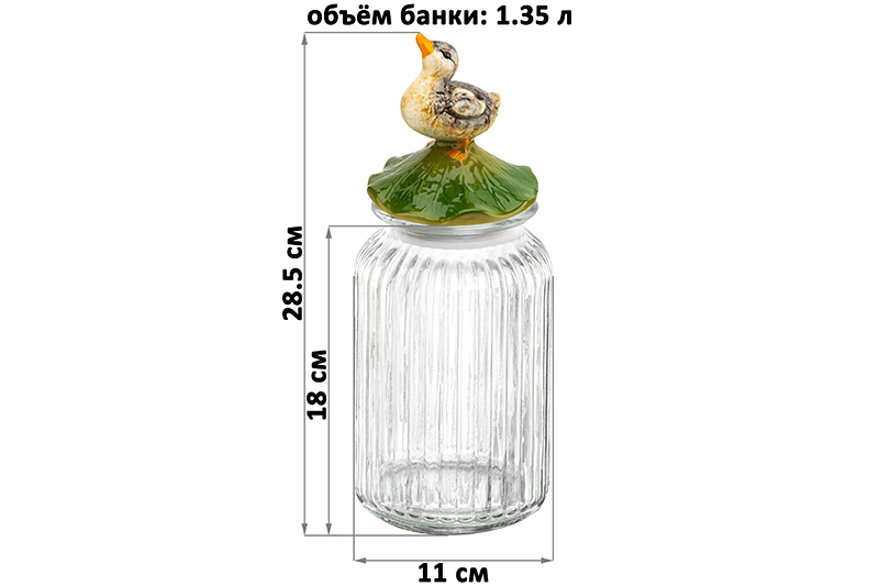 Банка д/хранения 1,35 л 11*11*28,5 см "Уточка" с крышкой с силиконовым уплотнителем